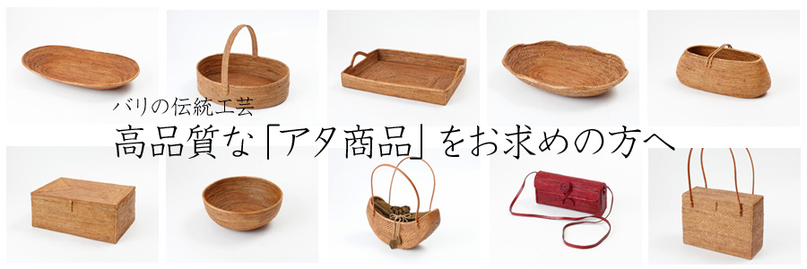 当社では多様な種類のカゴ製品を扱っています。中でもバリの伝統工芸と言われる「アタ商品」は非常に品質が良いと、お客様に喜んでいただいています。私たちが扱うアタ商品とはどんなものか。そして、なぜ品質が良いのかを是非知って頂きたいと思います。